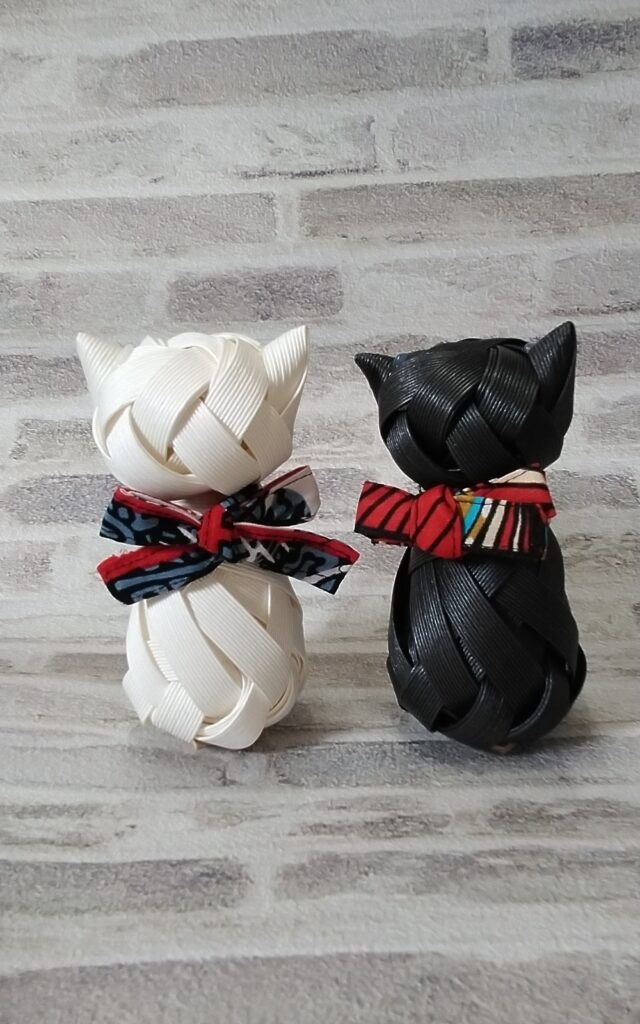 ※クラフトバンド製の猫オブジェは1体1体手作りし、異なる柄、異なる大きさの一点モノです。